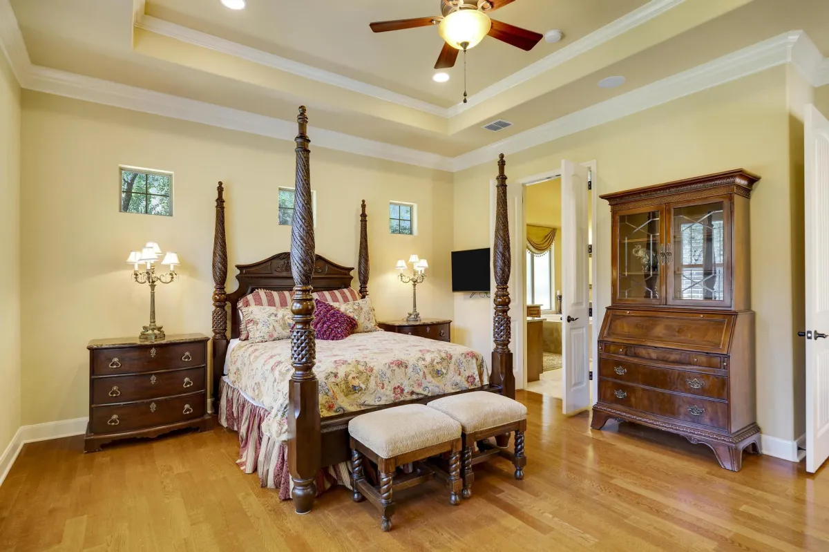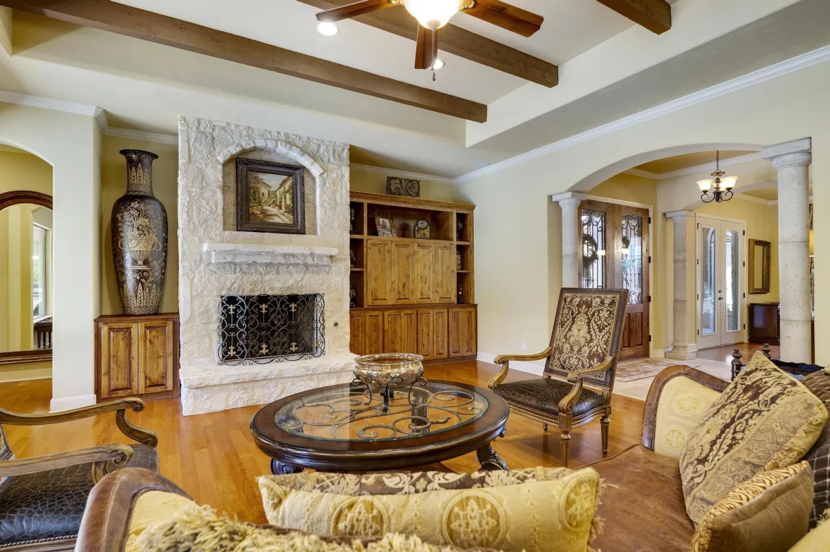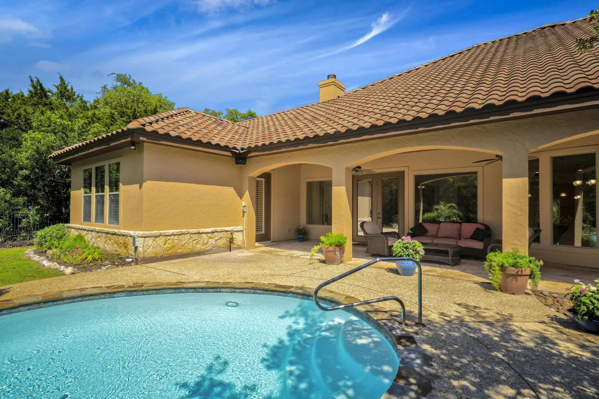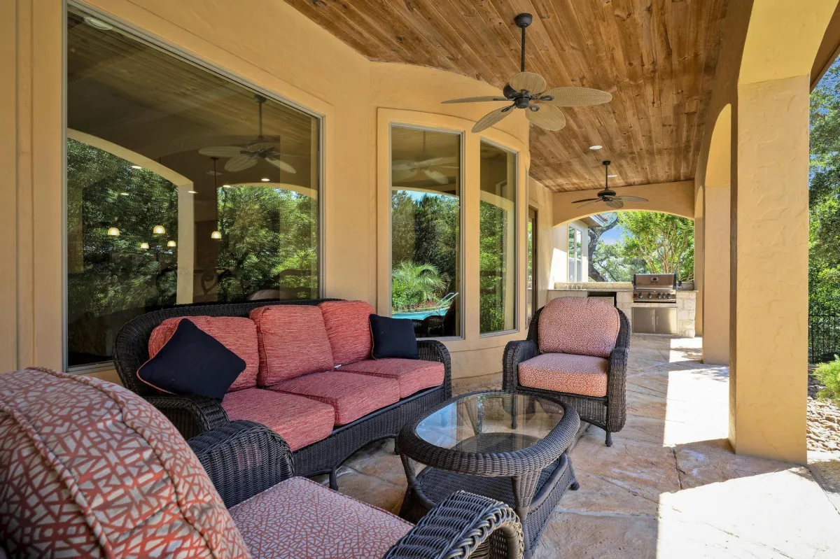 Stunning Mediterranean retreat offering the perfect blend of comfort, convenience and luxury living! Open concept connects dining, kitchen, breakfast & living creating the ultimate entertaining and living experience. Rear wall of expansive windows seamlessly merges the indoor & outdoor spaces. Highly functional chef's kitchen equipped with deluxe Delonghi stove, butler pantry, and an abundance of cabinetry providing optimal convenience and efficiency. Private primary bedroom w/ luxurious en-suite & outdoor access. Additional accommodations include a secondary bedroom and/or study downstairs & two secondary bedrooms each w/ a full bath & a game room up. Detached 1-bedroom, 1- bathroom casita offers versatile space for guests or a private home office. The combination of a large covered porch, an outdoor kitchen & Keith Zars infinity pool creates the perfect oasis for relaxation and entertainment. Storage will never be an issue with two incredibly spacious walk-in attic areas and a 3-car garage.